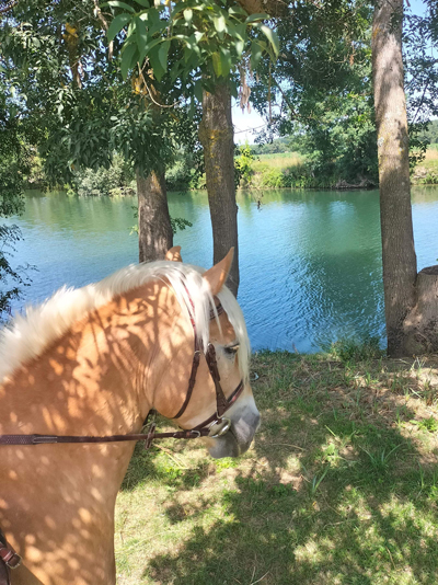 Sur 2 jours, rando à cheval le matin, piscine l’après midi et camping aux Agriers le soir